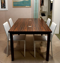 Dal taglio caratteristico e moderno il tavolo con inserti by Aresi è stato progettato dal Designer Brunelli al fine di evidenziare le tradizionali armonie elettive. Tipici gli ornamenti quadrati in argento.